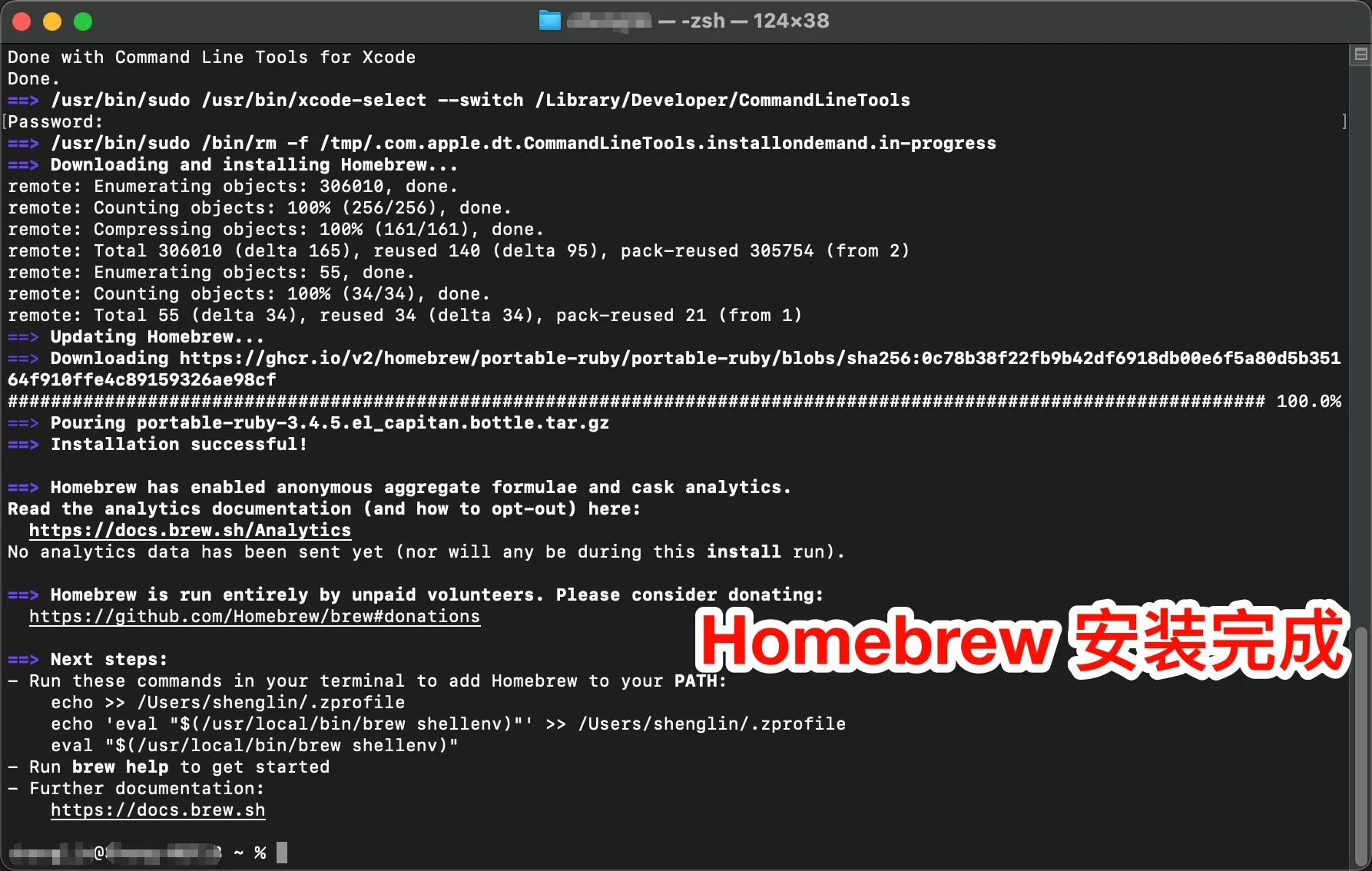 Homebrew 是 macOS 缺失的软件包的管理器。