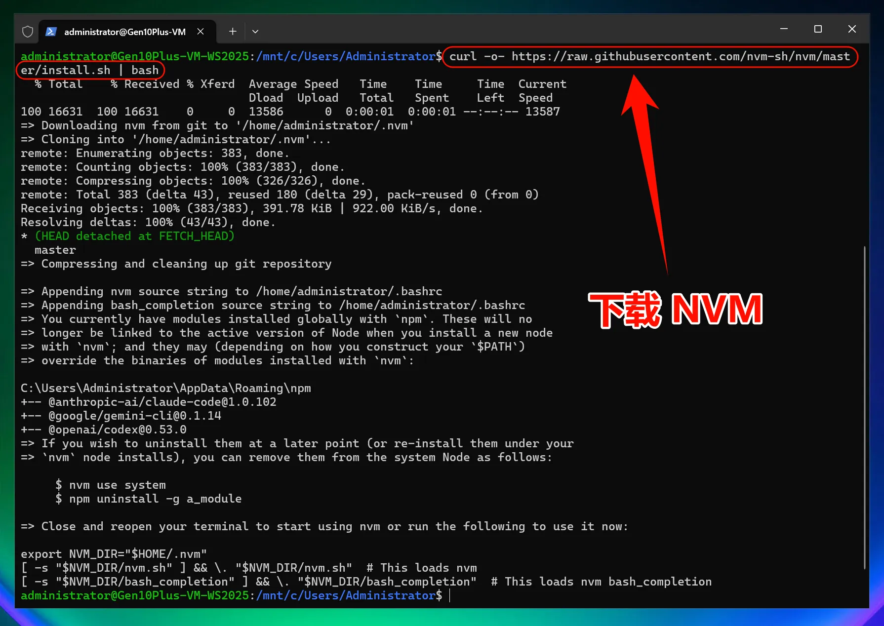 curl -o- https://raw.githubusercontent.com/nvm-sh/nvm/master/install.sh | bash