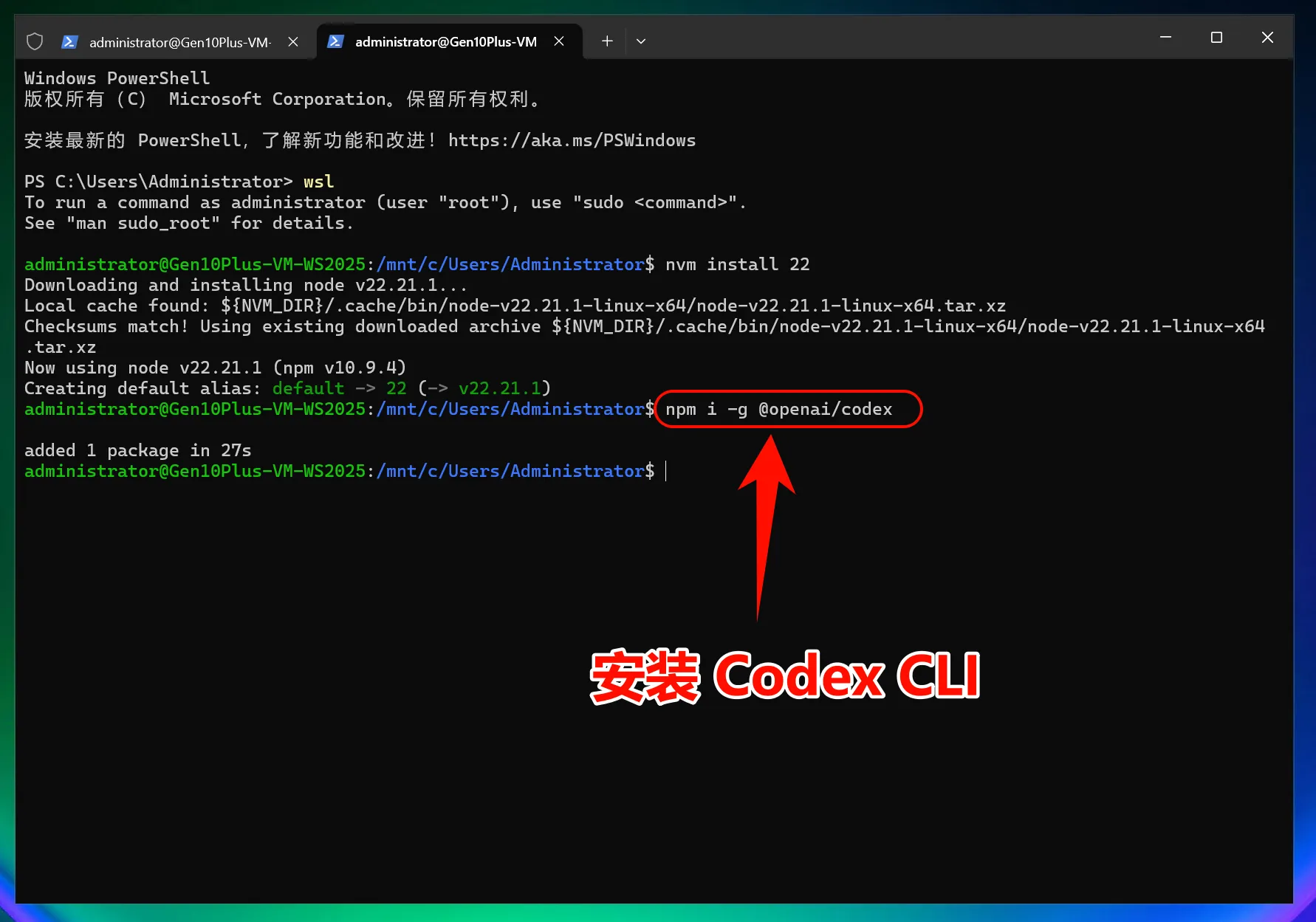 sudo安装:sudo npm install -g @openai/codex - 或者配置