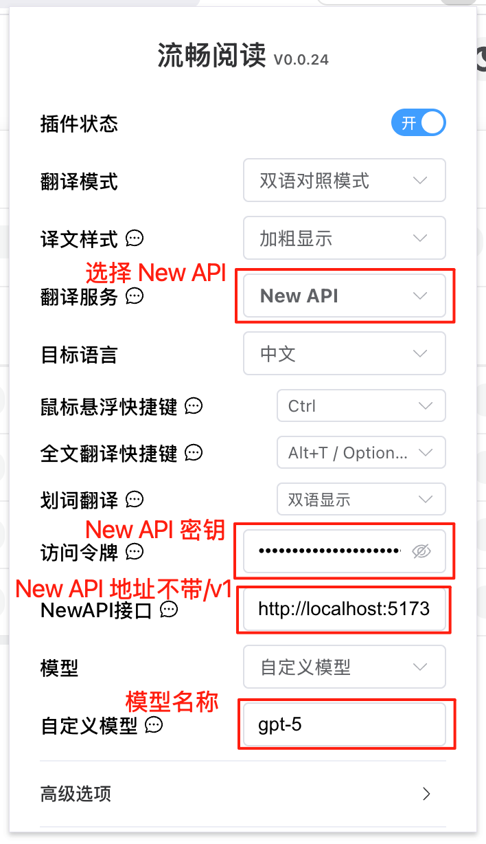 当浏览器安装了流畅阅读插件后,打开 AI 控制台->令牌管理页面会弹出添加流畅阅读的提示
